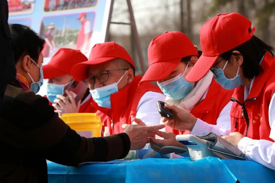 現(xiàn)場醫(yī)護人員認真為每一個前來問診的群眾進行檢查,免費測量血壓、血糖等,細致地為群眾分析和講解身體狀況,耐心地針對大家提出的各種癥狀提出切實可行的診療建議,告知患者治療方法,叮囑其平日生活里需要注意的事項。