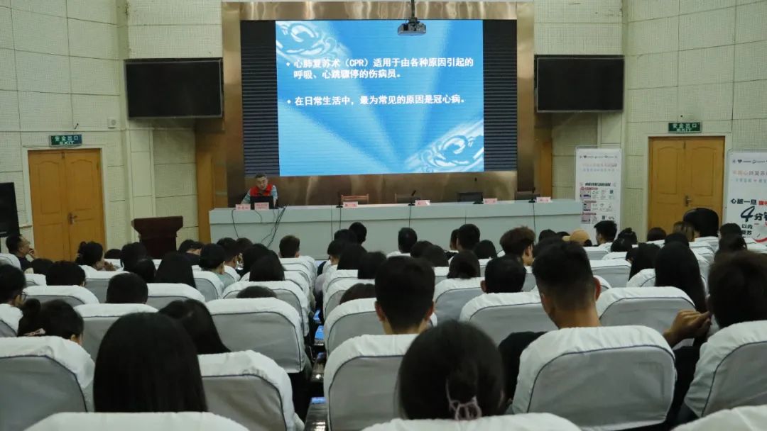 培訓(xùn)中,心內(nèi)科一病區(qū)副主任陳雪斌利用PPT、圖片、視頻等深入淺出地講解了心臟驟停的概念、心肺復(fù)蘇操作、自動(dòng)體外自動(dòng)除顫儀(AED)使用等知識(shí),強(qiáng)調(diào)了應(yīng)急救護(hù)“黃金四分鐘”的重要性,通過(guò)成功救治案例讓大家進(jìn)一步認(rèn)識(shí)到心肺復(fù)蘇的重要意義,并鼓勵(lì)全體師生要學(xué)好急救知識(shí),伸出援助之手,守護(hù)生命安全。