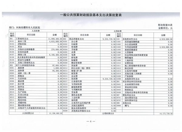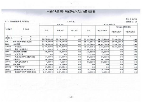 濮陽市人民醫(yī)院2016年度部門決算批復(fù)表