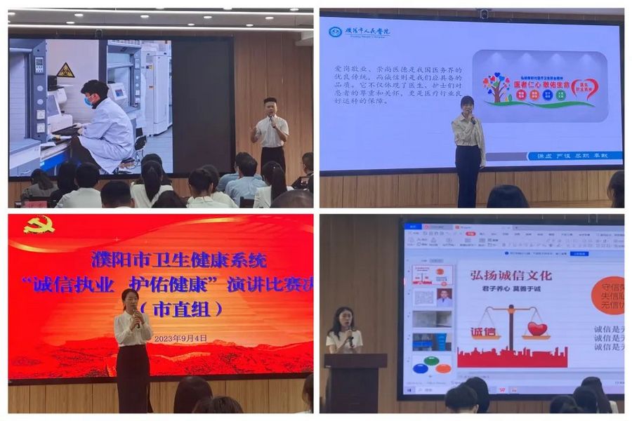 誠信為本,大醫(yī)精誠,護佑健康。此次演講比賽,生動展示了新時期醫(yī)務(wù)工作者誠信執(zhí)業(yè)、奮發(fā)向上的精神風(fēng)貌和使命擔(dān)當(dāng),激發(fā)了廣大醫(yī)務(wù)人員救死扶傷、干事創(chuàng)業(yè)的激情,更加堅定了守護人民群眾生命健康的決心與信念,我院將以此為契機,踔厲奮發(fā)、勇毅前行,奮力推進醫(yī)院高質(zhì)量發(fā)展,為建設(shè)健康中國、健康濮陽,增進人民健康福祉作出新的更大貢獻!