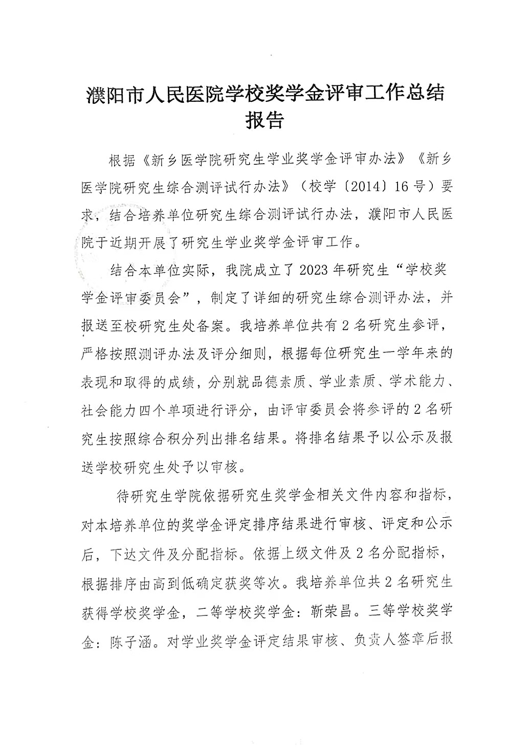 根據《新鄉(xiāng)醫(yī)學院研究生學業(yè)獎學金評審辦法》《新鄉(xiāng)醫(yī)學院研究生綜合測評試行辦法》(校學〔2014〕16號)要求,結合培養(yǎng)單位研究生綜合測評試行辦法,濮陽市人民醫(yī)院于近期開展了研究生學業(yè)獎學金評審工作。