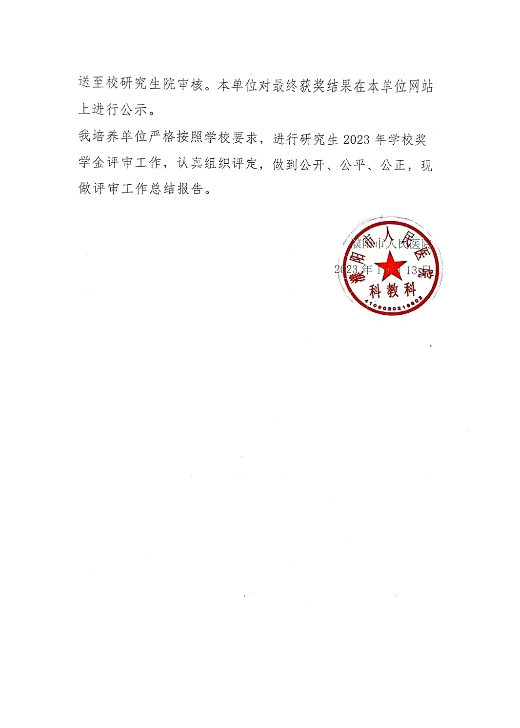 我培養(yǎng)單位嚴格按照學校要求,進行研究生2023年學校獎學金評審工作,認真組織評定,做到公開、公平、公正,現(xiàn)做評審工作總結報告。