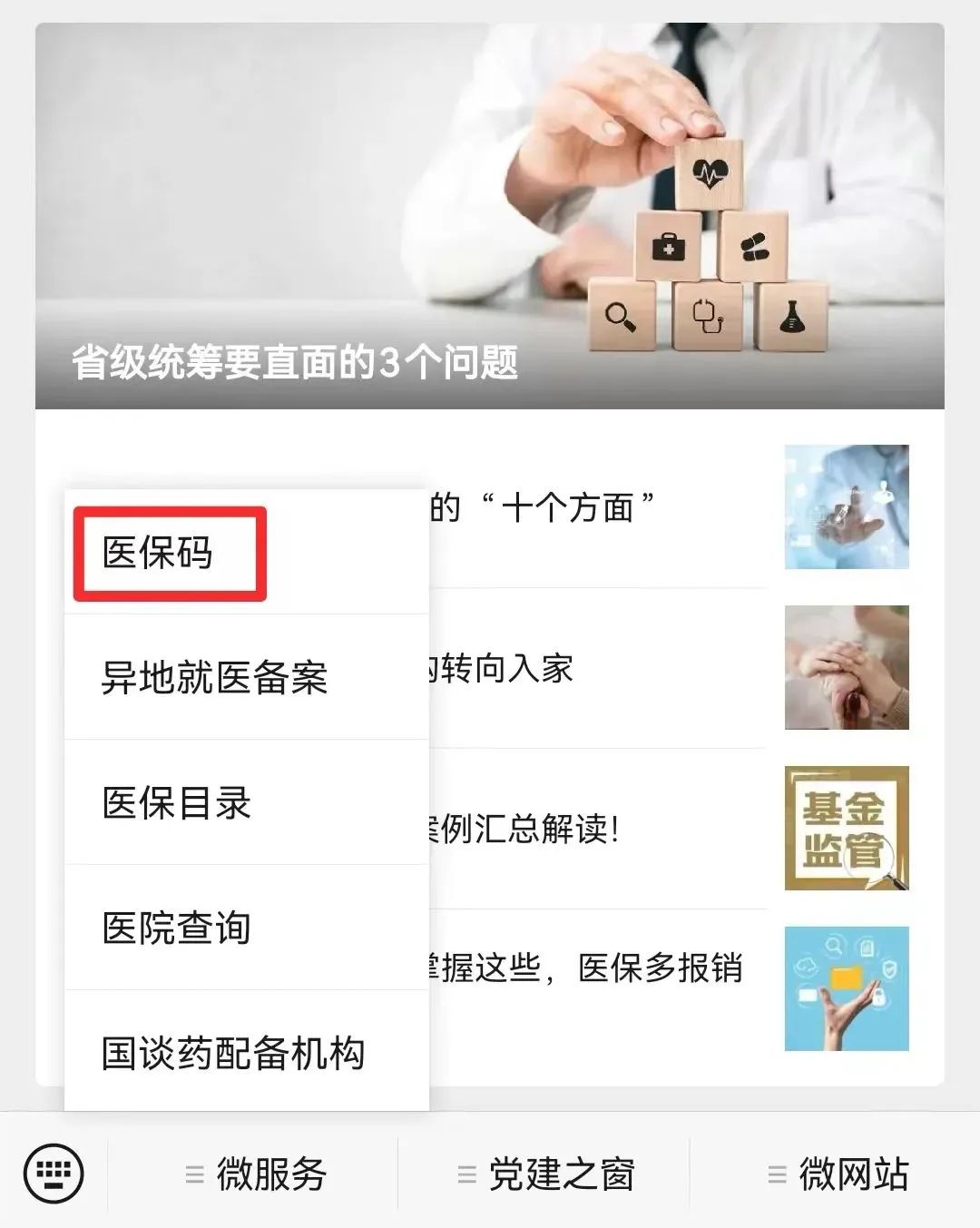 第一步:關(guān)注“中國(guó)醫(yī)療保險(xiǎn)”微信公眾號(hào)。