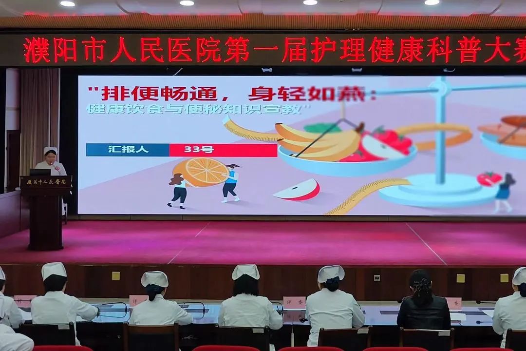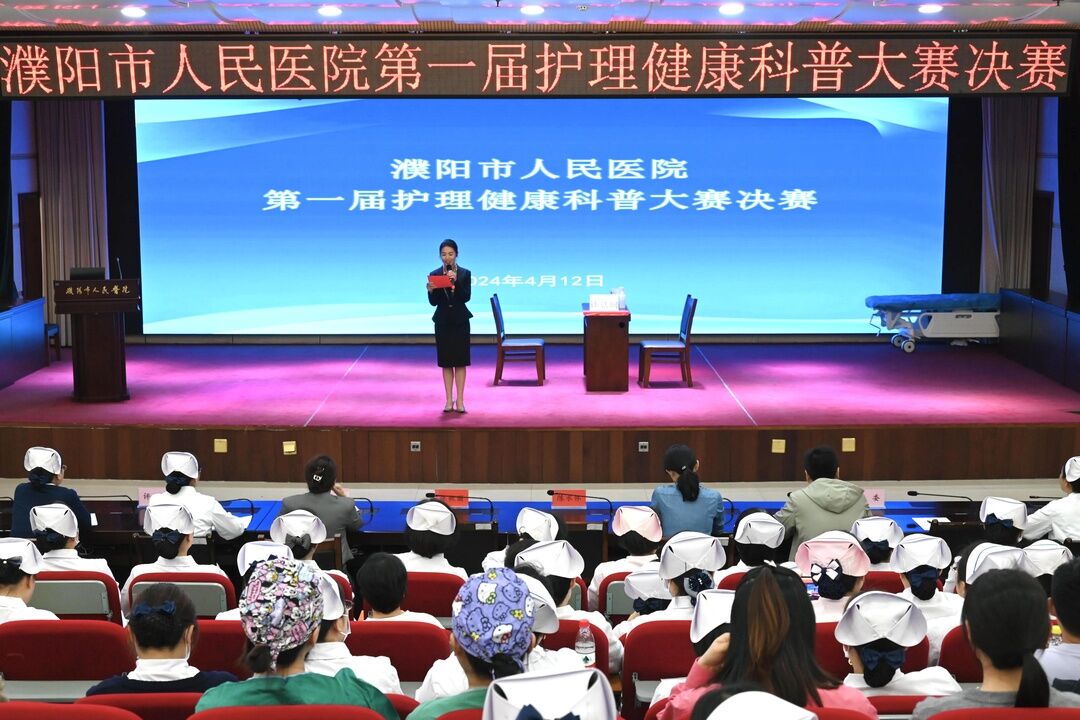 為進一步激發(fā)全院護理人員科普創(chuàng)作熱情,創(chuàng)新科普形式,提升健康科普服務能力,傳播健康科普知識,形成持續(xù)推動醫(yī)院高質(zhì)量發(fā)展的科普力量。4月12日,濮陽市人民醫(yī)院舉辦了“第一屆護理健康科普大賽”。本次比賽由護理部、工會聯(lián)合開展,醫(yī)院黨委委員、工會主席陳水懷,黨委委員、副院長張秋麗蒞臨大賽指導工作,各科室護士長、護理技術骨干及近五年新入職護士等300余人現(xiàn)場觀摩。