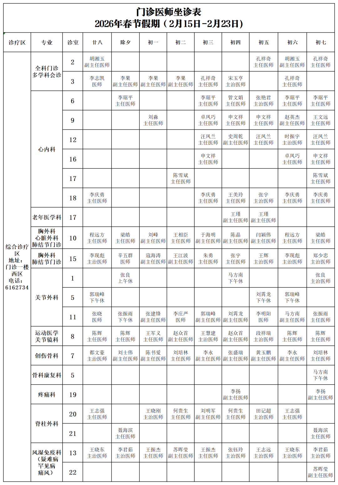 2026年春節(jié)假期期間(2月15日—2月23日),我院門急診及住院安排如下: