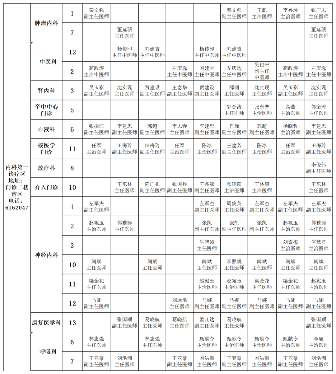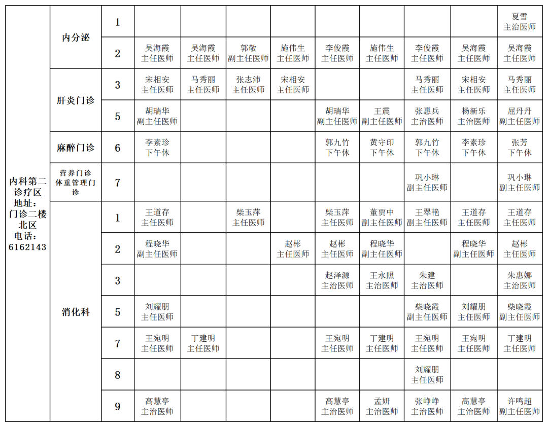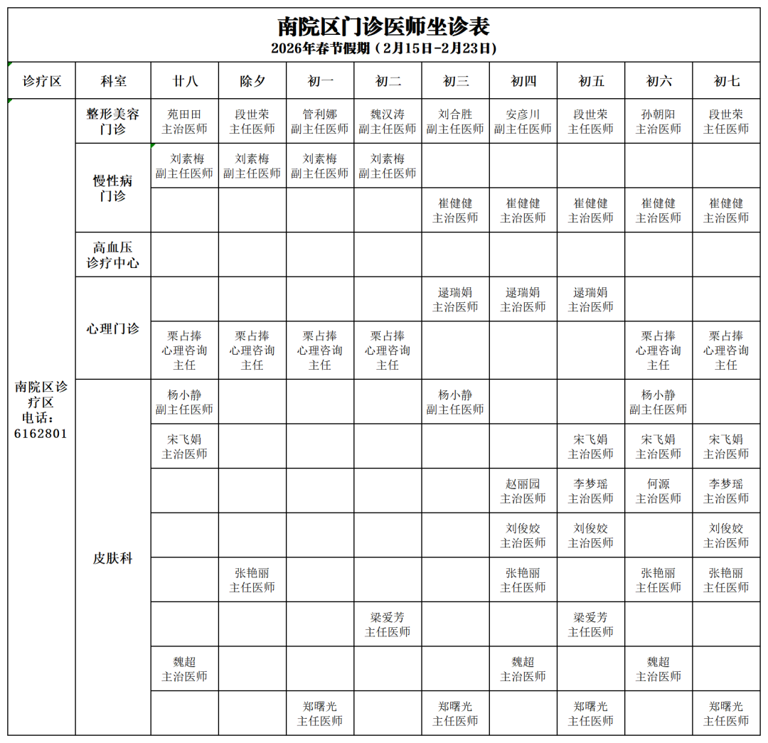 南院區(qū)門診坐診表