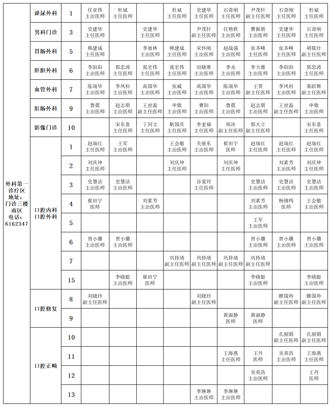 主院區(qū)門診坐診表