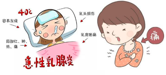 當(dāng)發(fā)生乳腺炎時,乳房以及身體可能會有如下表現(xiàn):乳房疼痛,排乳不暢,乳腺局部出現(xiàn)腫塊,形狀為楔形或不規(guī)則形,可發(fā)生于乳房的任何部位,乳房皮膚可出現(xiàn)紅、腫、熱、痛,病變區(qū)域皮溫升高,有壓痛;全身癥狀包括發(fā)熱,體溫可達(dá)39~40℃,伴有寒戰(zhàn)、全身出汗、頭暈、乏力等癥狀。