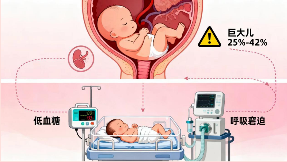 ● 分娩困難:胎兒容易長成“巨大兒”,導致難產(chǎn)、產(chǎn)道損傷、剖宮產(chǎn)幾率增高。